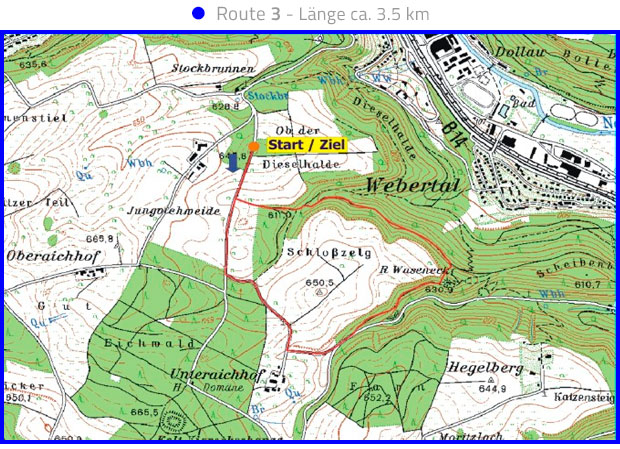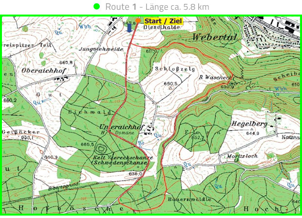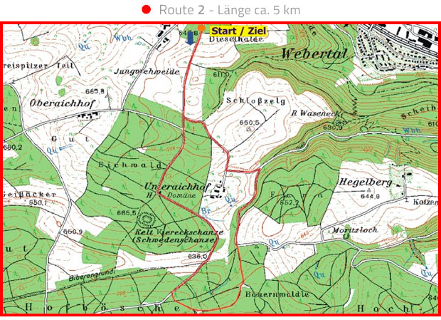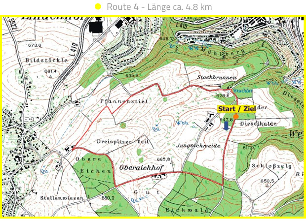 Vier ausgeschilderte Nordic Walking Strecken, gemeinsamer Start- und Zielpunkt ist der Wanderparkplatz auf dem Stockbrunnen.