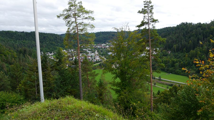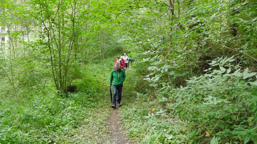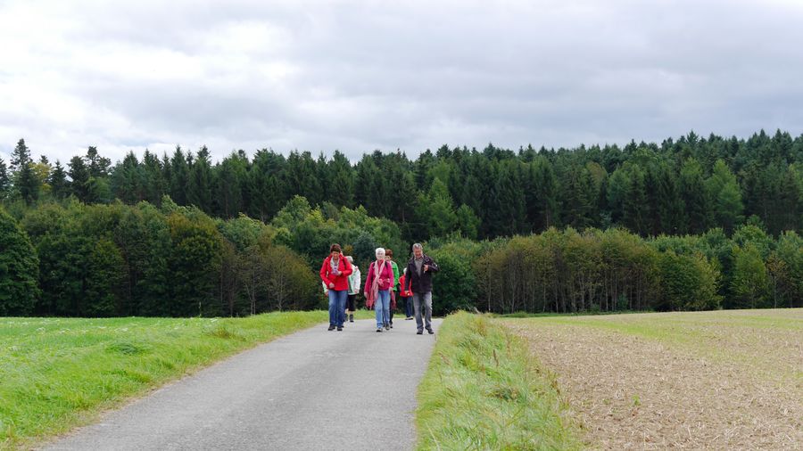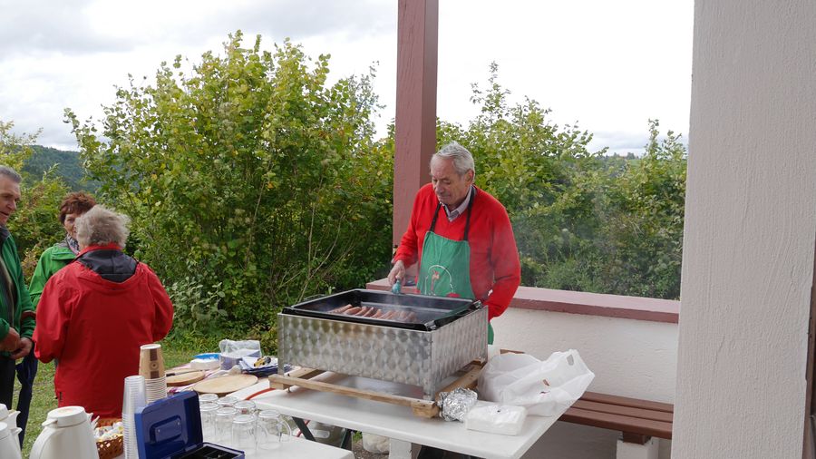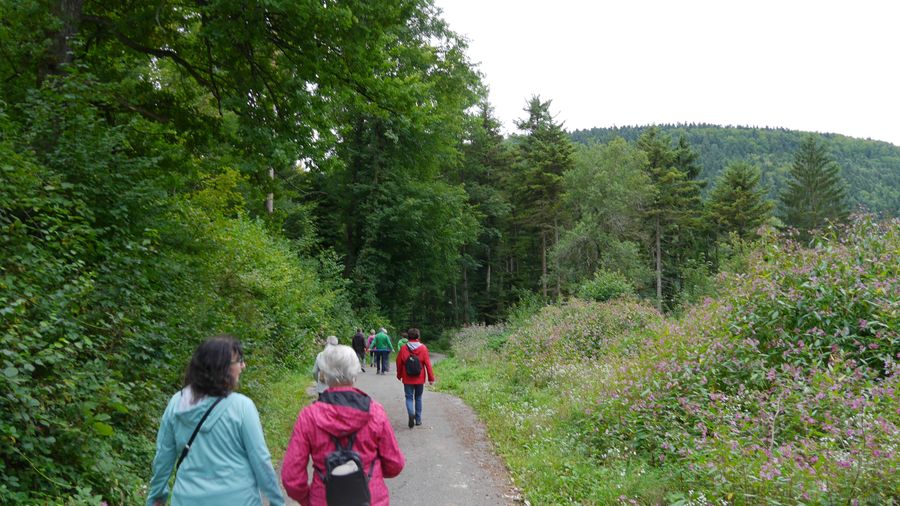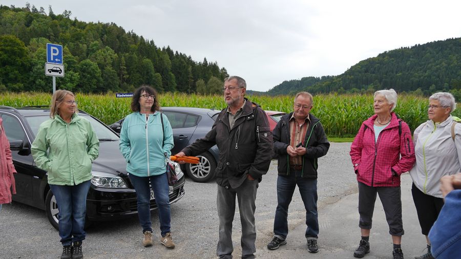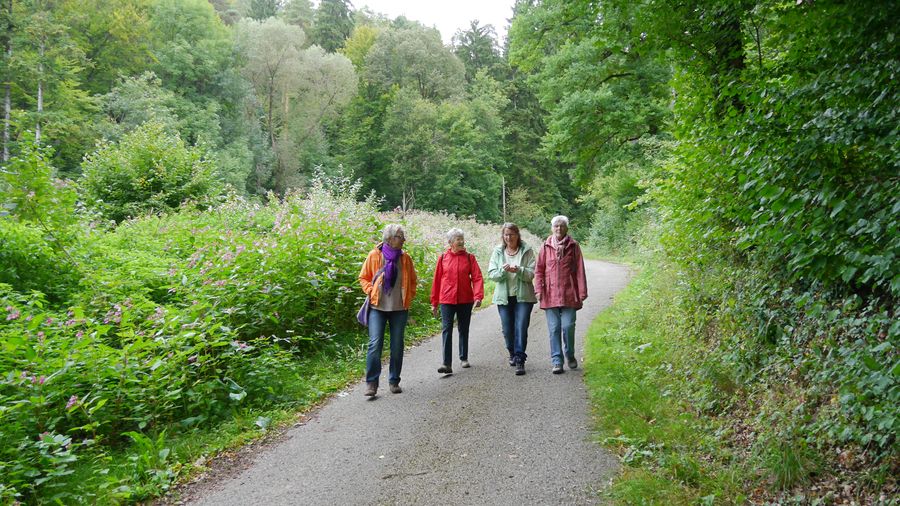 Obwohl die Wettervorhersage zu 90% Regen voraussagte, blieb die Wandergruppe vor Regengüssen verschont. Sammelpunkt war der Altoberndorfer Sportplatz. Nach einer Einführung und Beschreibung der Strecke von Helmut Große, der mit seiner Frau Elisabeth am Tag zuvor die 7 km Strecke inspizierte und von Brennnesseln, Ranken und stachelnden Brombeerzweigen mühevoll ausgelichtet hatte, ging es los Richtung Epfendorf mit dem ersten Etappenziel, die SCHENKENBURG.